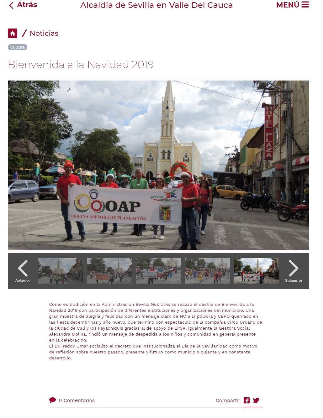 La Alcaldía de Sevilla realizó el tradicional desfile de bienvenida a la navidad que cerrará con un espectáculo del Circo Urbano de Cali y los Payachiquies gracias al apoyo de EPSA.