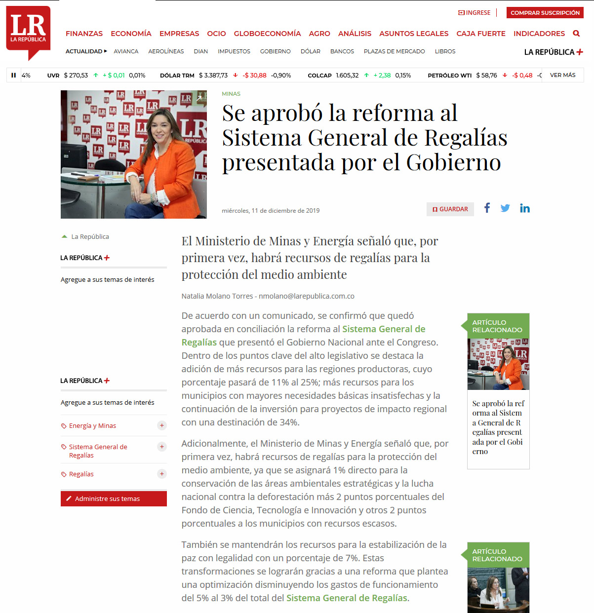 SE APROBÓ LA REFORMA AL SISTEMA GENERAL DE REGALÍAS PRESENTADA POR EL GOBIERNO, LAREPUBLICA CO