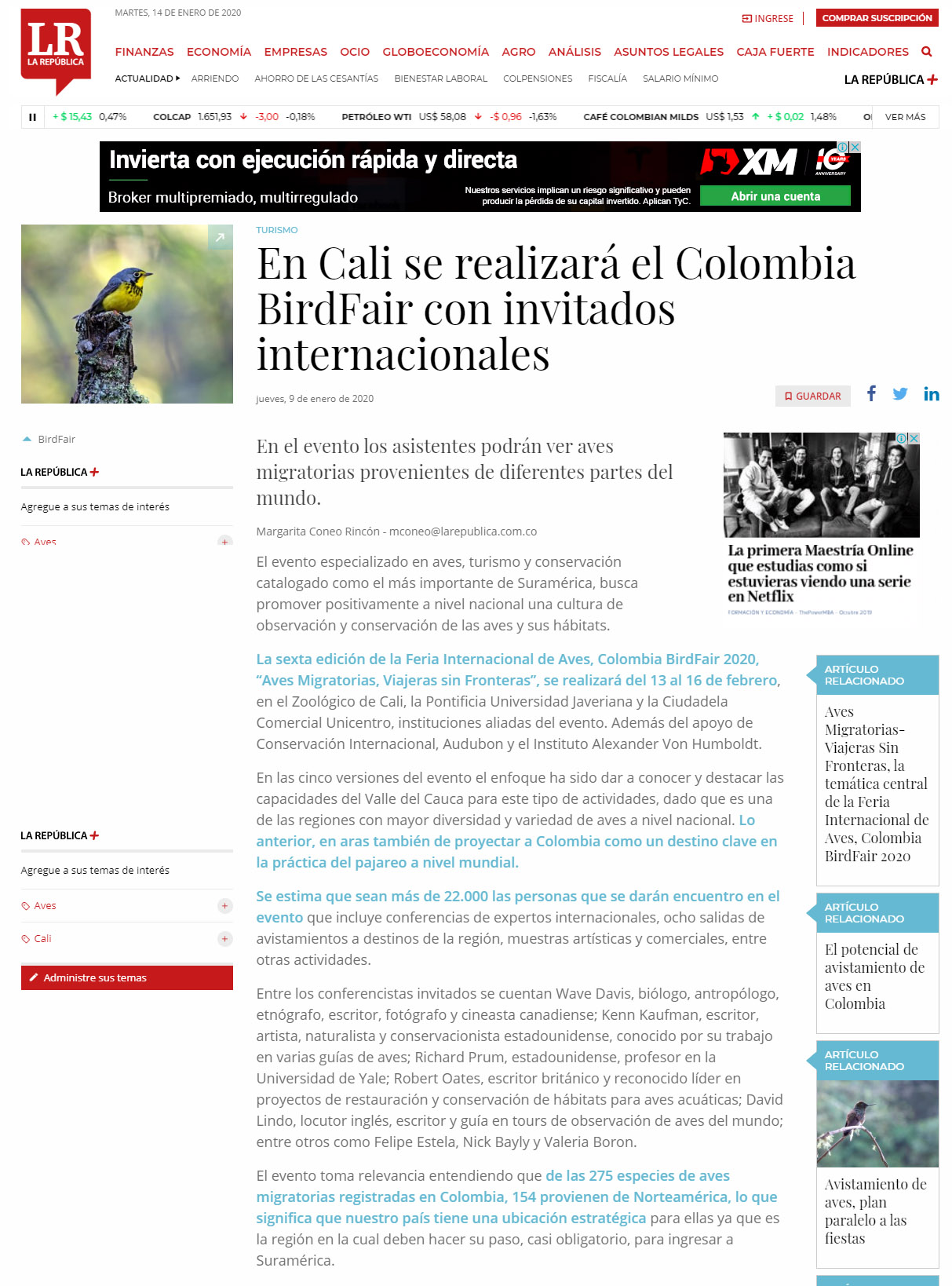 EN CALI SE REALIZARÁ EL COLOMBIA BIRDFAIR CON INVITADOS INTERNACIONALES, LAREPUBLICA
