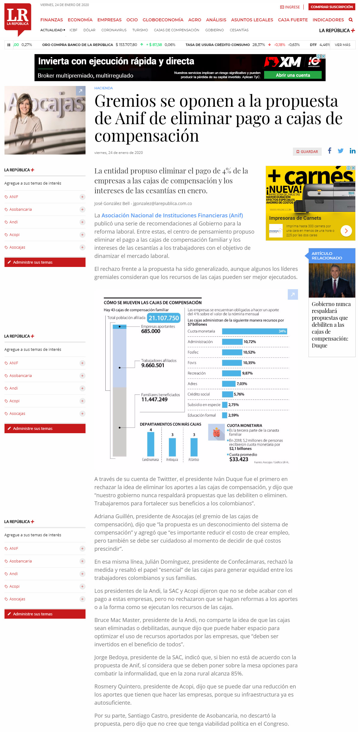 GREMIOS SE OPONEN A PROPUESTA DE ELIMINAR PAGO A CAJAS DE COMPENSACIÓN, LAREPUBLICA CO