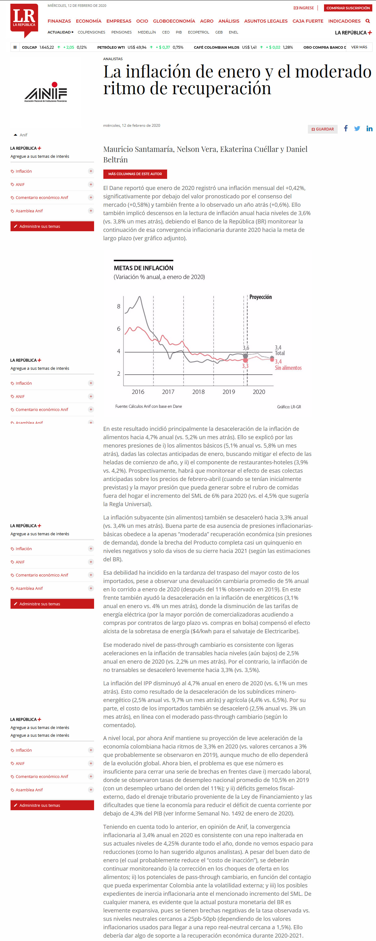 LA INFLACIÓN DE ENERO Y EL MODERADO RITMO DE RECUPERACIÓN, LAREPUBLICA CO