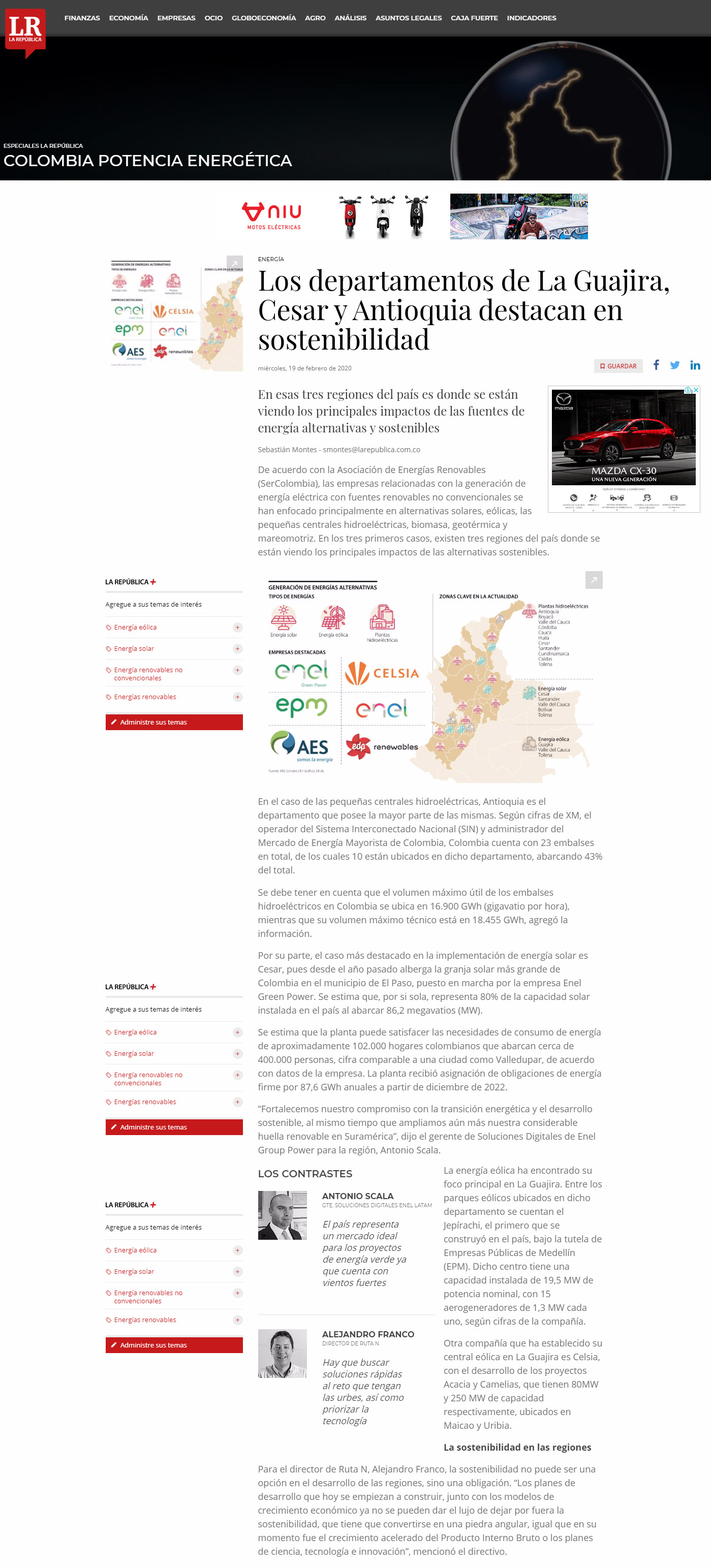 DEPARTAMENTOS DE LA GUAJIRA,CESAR Y ANTIOQUIA DESTACAN EN SOSTENIBILIDAD, LAREPUBLICA CO
