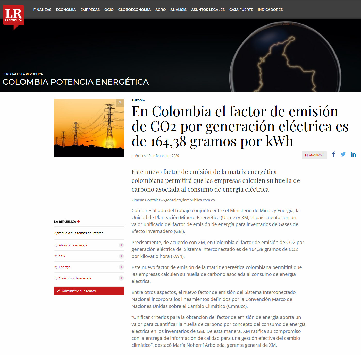 EN COLOMBIA EL FACTOR DE EMISIÓN DE CO2 POR ELECTRICIDAD ES 164 GRAMOS POR KWH, LAREPUBLICA CO