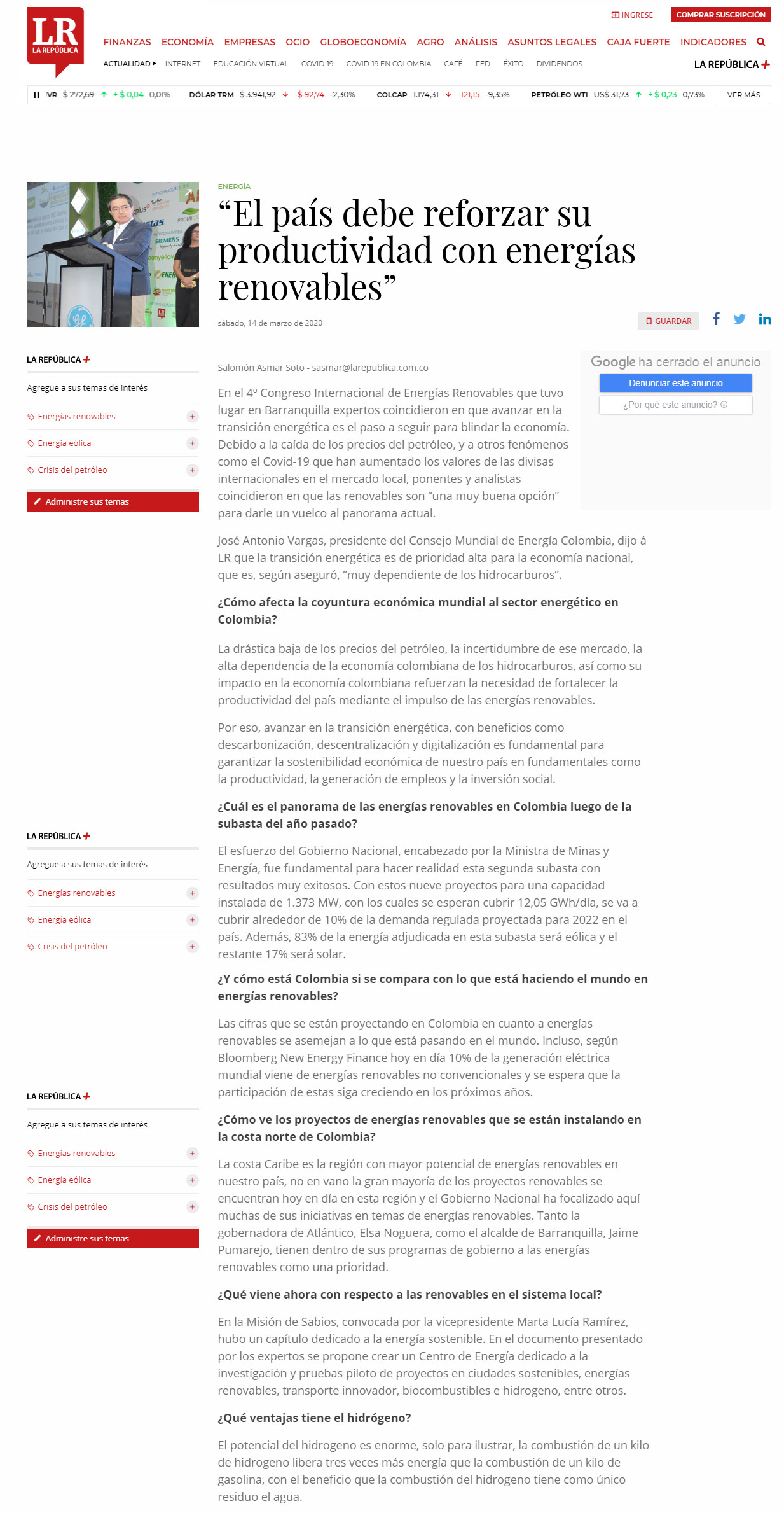 En el 4º Congreso Internacional de Energías Renovables que tuvo lugar en Barranquilla expertos coincidieron en que avanzar en la transición energética es el paso a seguir para blindar la economía. Debido a la caída de los precios del petróleo, y a otros fenómenos como el Covid-19 que han aumentado los valores de las divisas internacionales en el mercado local, ponentes y analistas coincidieron en que las renovables son “una muy buena opción” para darle un vuelco al panorama actual.