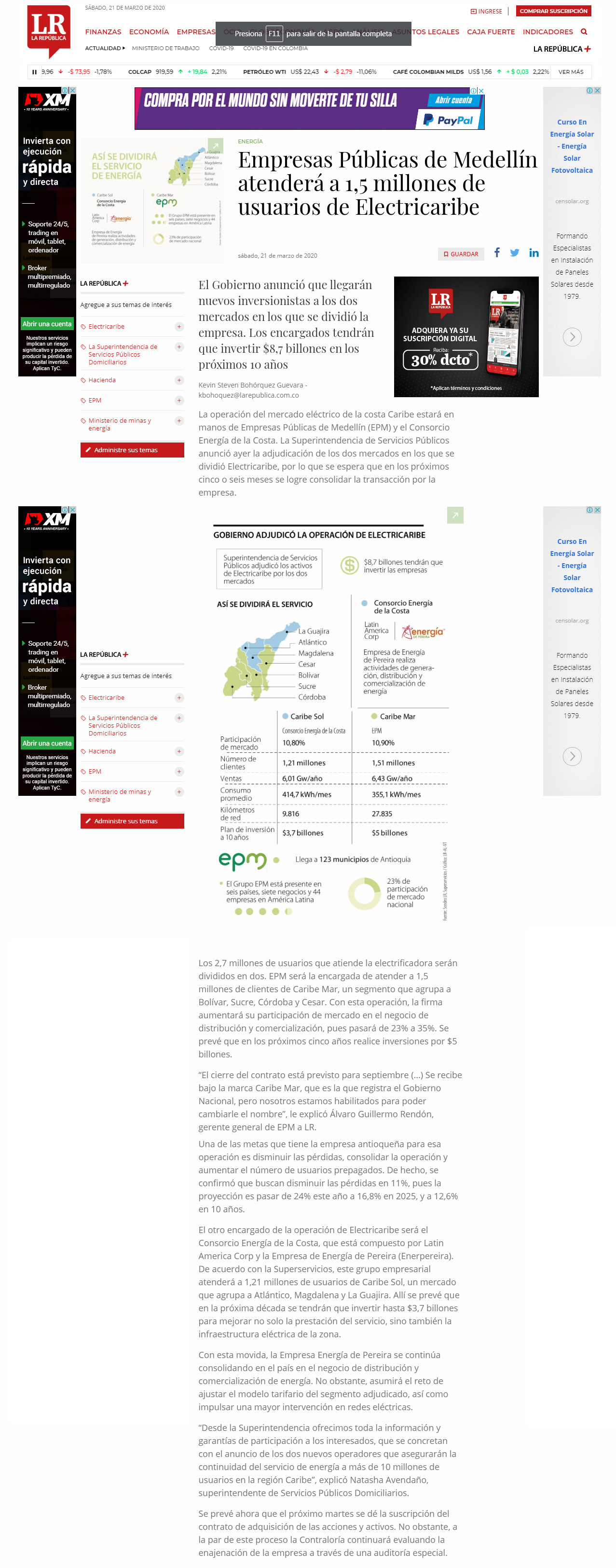 EPM atenderá a 1,5millones de usuarios de Electricaribe, larepública co