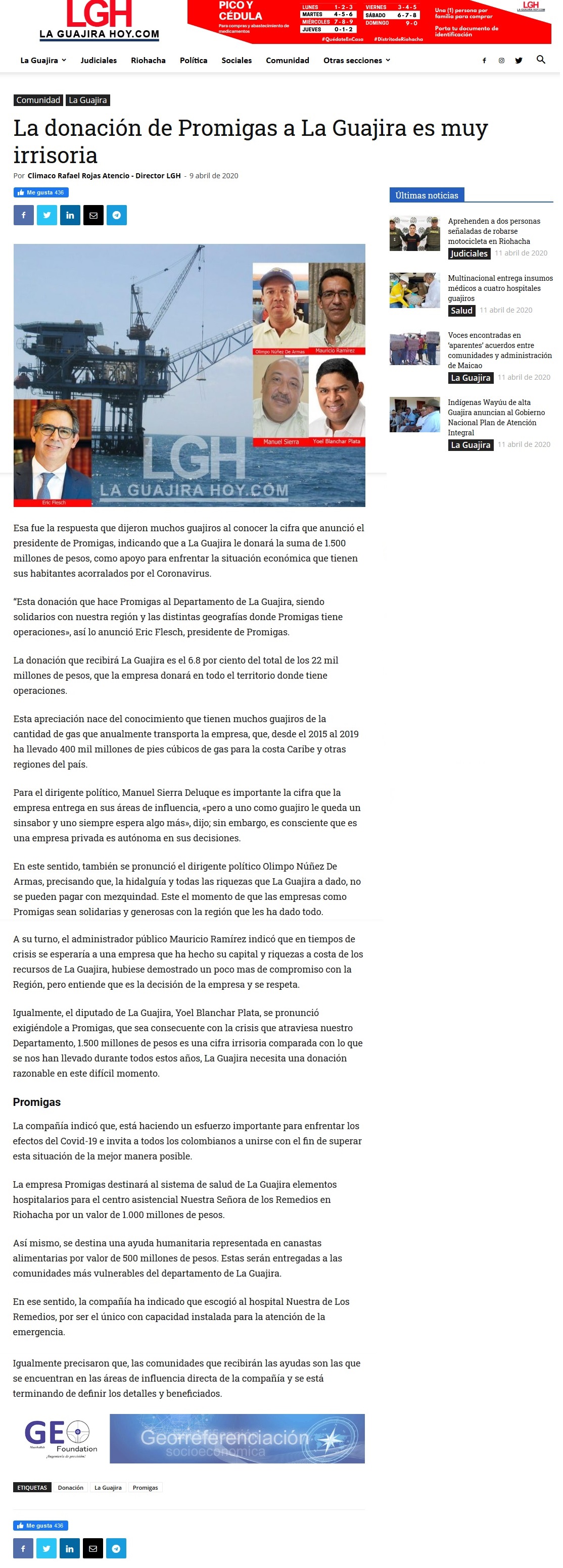"La donación de Promigas a la Guajira es muy irrisoria", esa fue la respuesta de muchos guajiros al conoocer la cifra que anunció el presidente de la empresa como apoyo para enfrentar la emergencia económica por elcoronavirus.