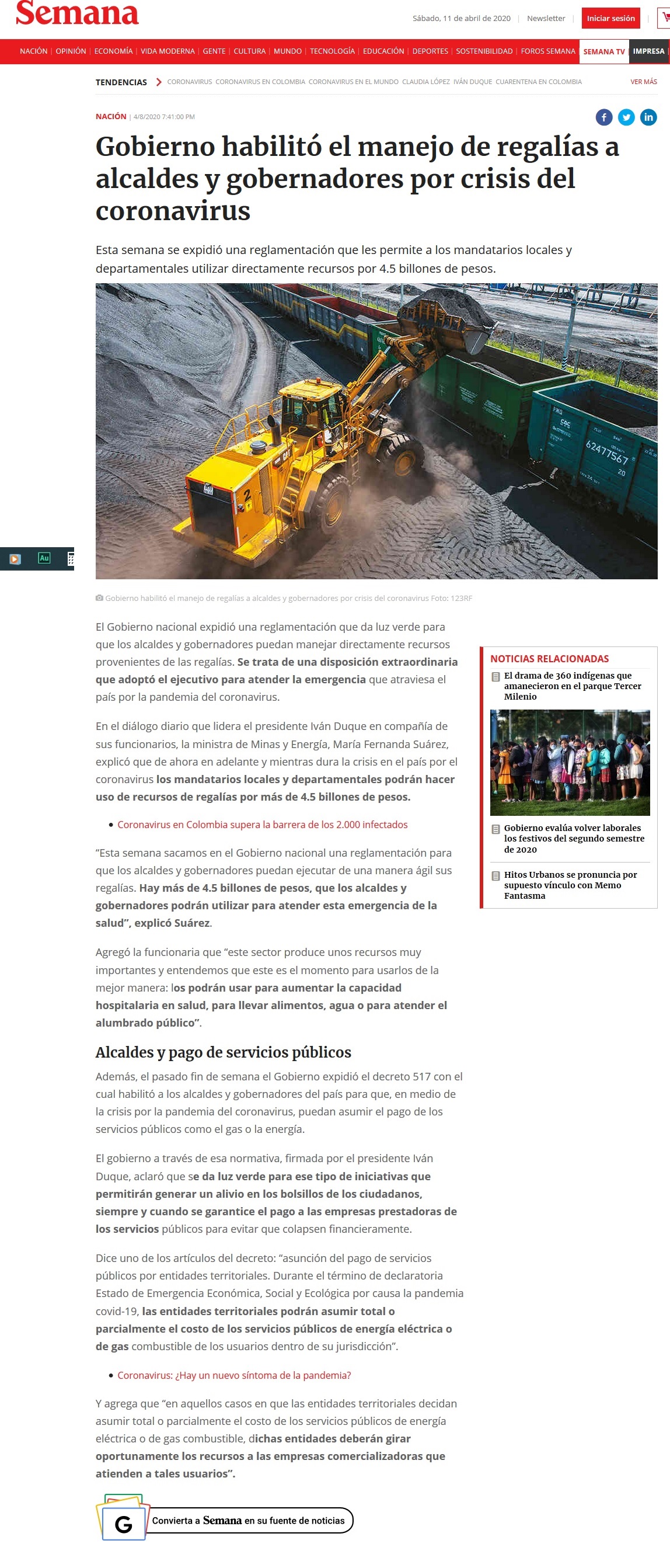 Esta semana el gobierno nacional expidió la reglamentación que permite a los alcaldes y gobernadores del país utilizar directamente los recursos de regalías para la atención de la emergencia por el coronavirus.