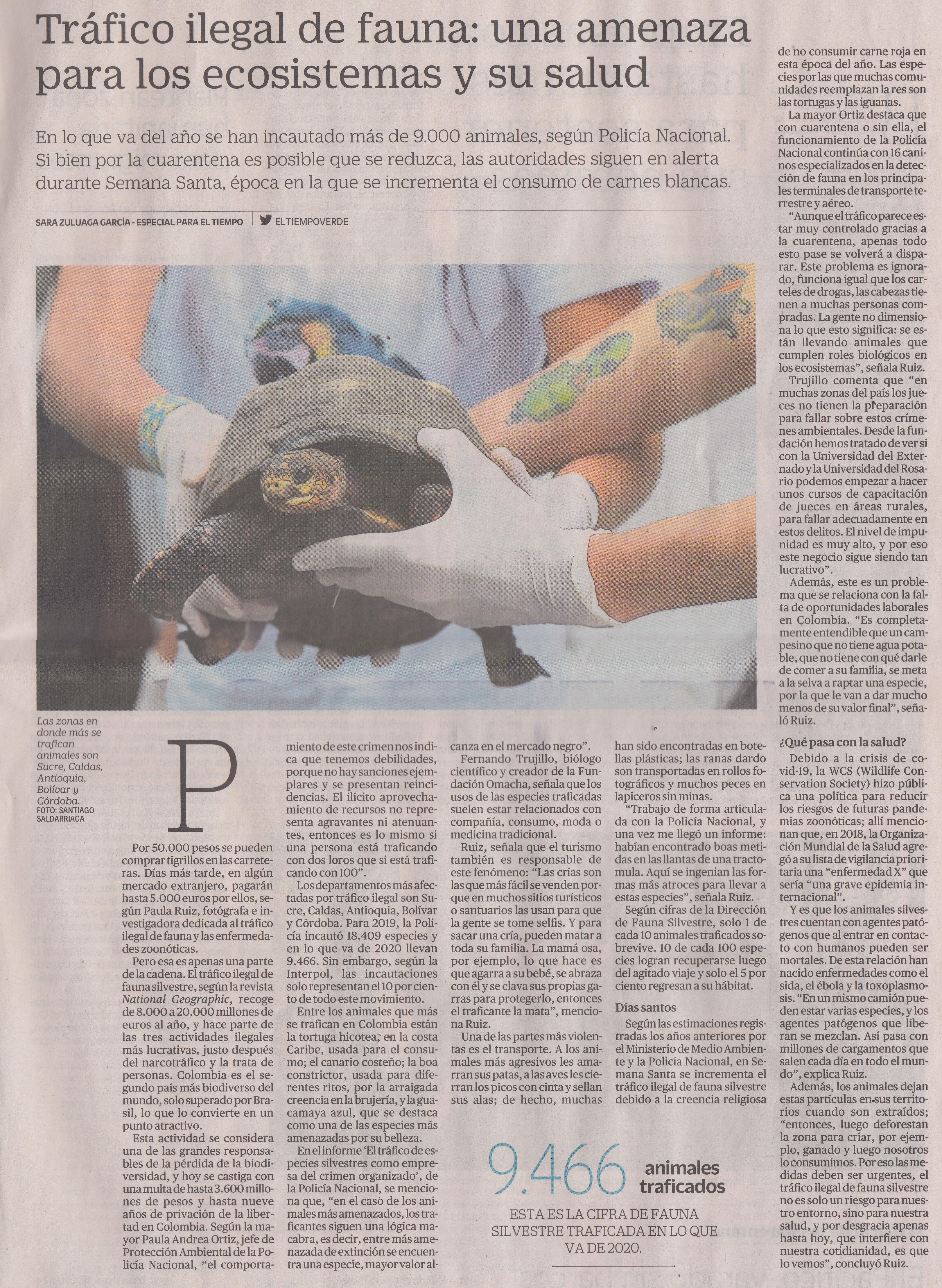 Tráfico ilegal de fauna, una amenaza para los ecosistemas y su salud, pag 2-3, El Tiempo