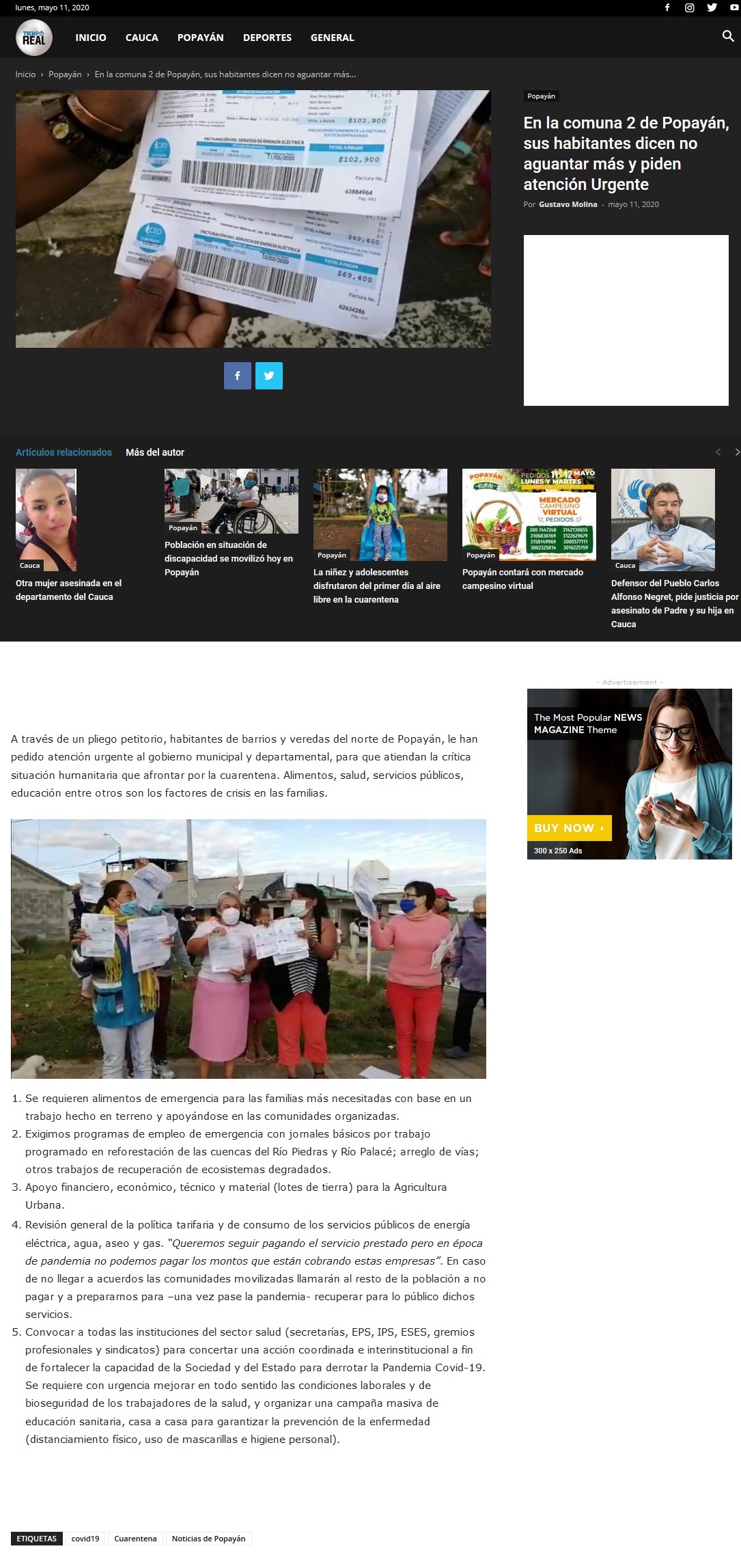 A través de un pliego petitorio, habitantes de barrios y veredas del norte de Popayán, le han ditigido una petición urgente al gobierno municipal y departamental, para que atiendan la crítica situación humanitaria que afrontan por la cuarentena por coronavirus como alimentos, salud y las alzas en los servicios públicos domiciliarios.