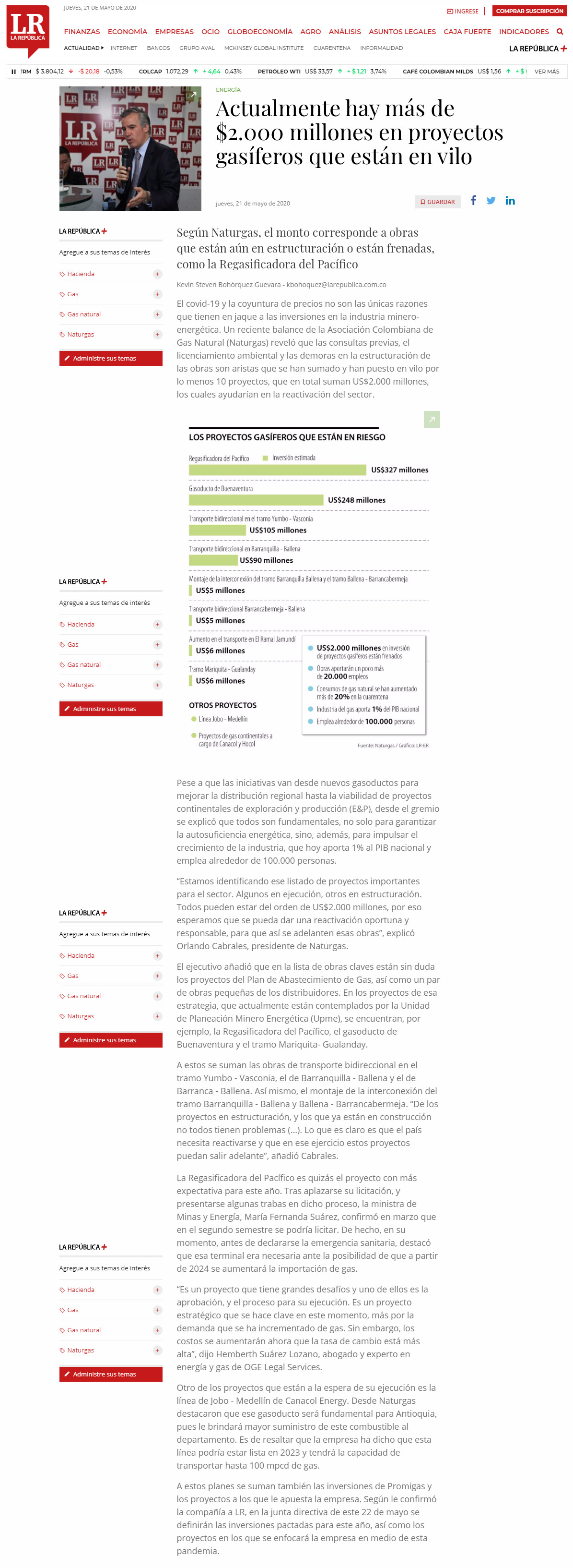 Hay más de $2000 millones en proyectos gasíferos que están en vilo, larepública co