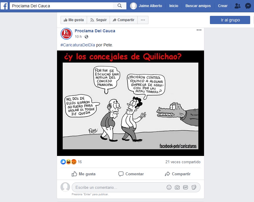 Caricatura de Pete sobre la falta de control político del Concejo de Santander de Quilichao a las empresas de servicios públicos por las altas tarifas.