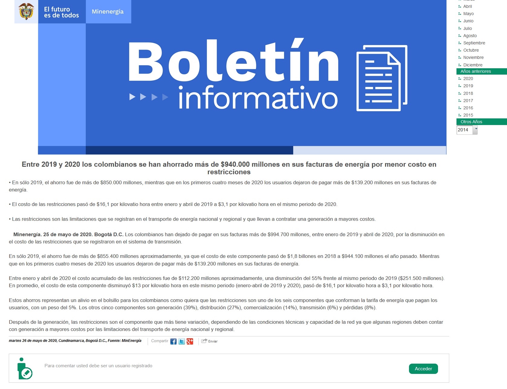 Según el Ministerio de Minas y Enregía, los colombianos han dejado de pagar en sus facturas mas de 994 millones de pesos por la disminución en el costo de las restricciones que se registraron en el sistema de transmisión de energía.