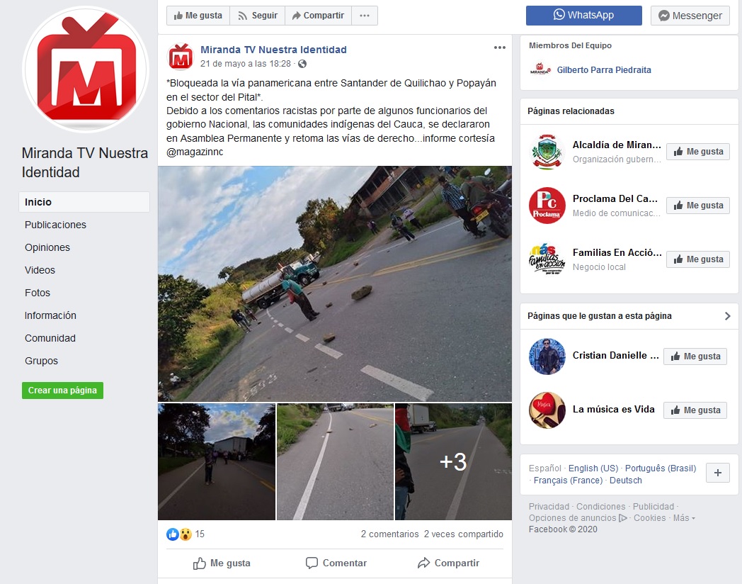 Debido a los comentarios racistas por parte de funcionarios del gobierno nacional, las comunidades indígenas se declararon en asamblea permanente y bloquearon la vía Panamericana a la altura de El Pital.