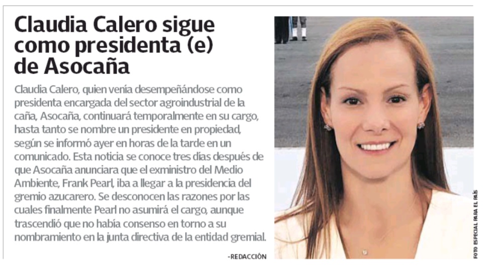 Claudia Calero sigue como Presidenta de Asocaña, pA12