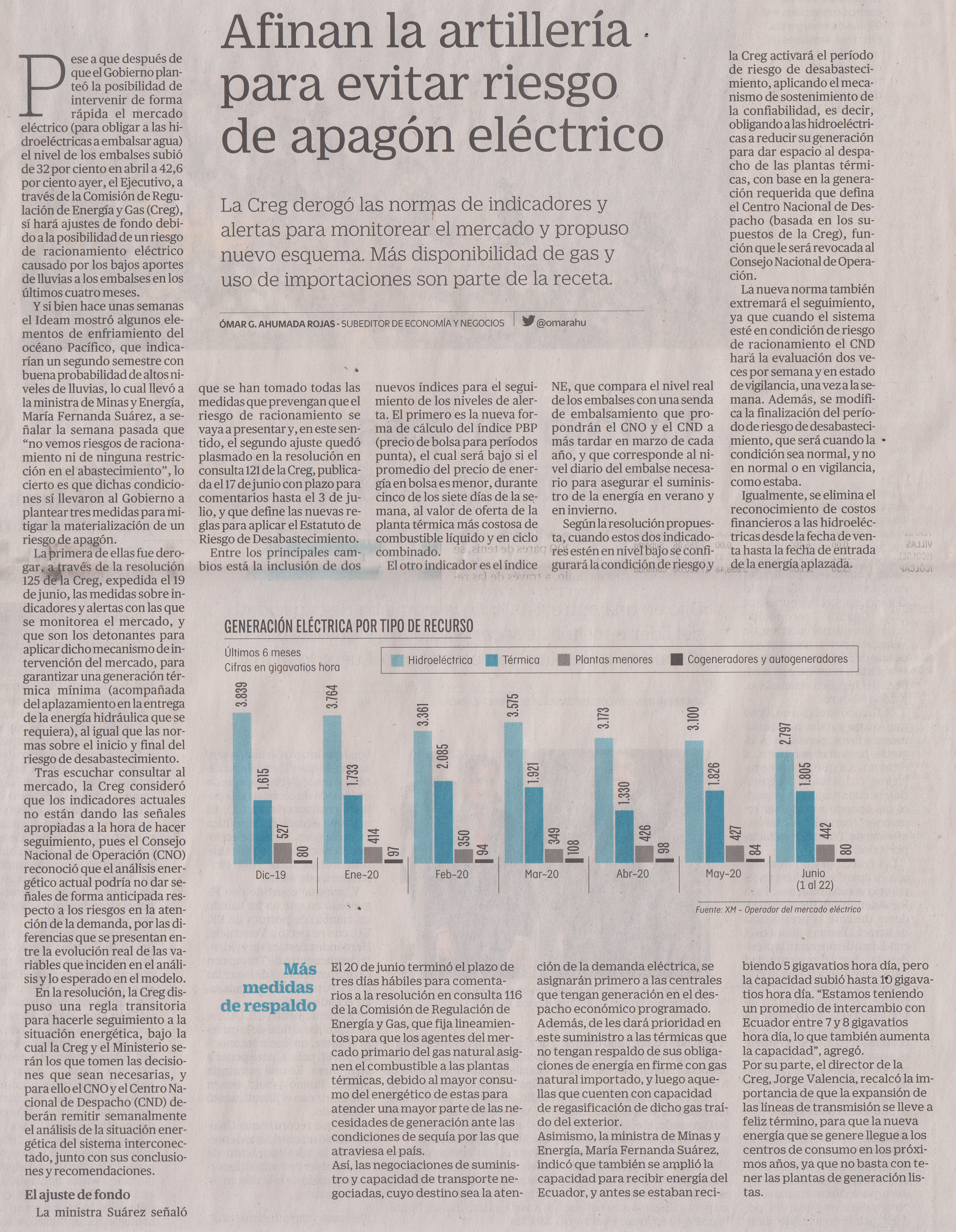 Afinan la artillería para evitar riesgo de apagón eléctrico, pag 1-8, El Tiempo