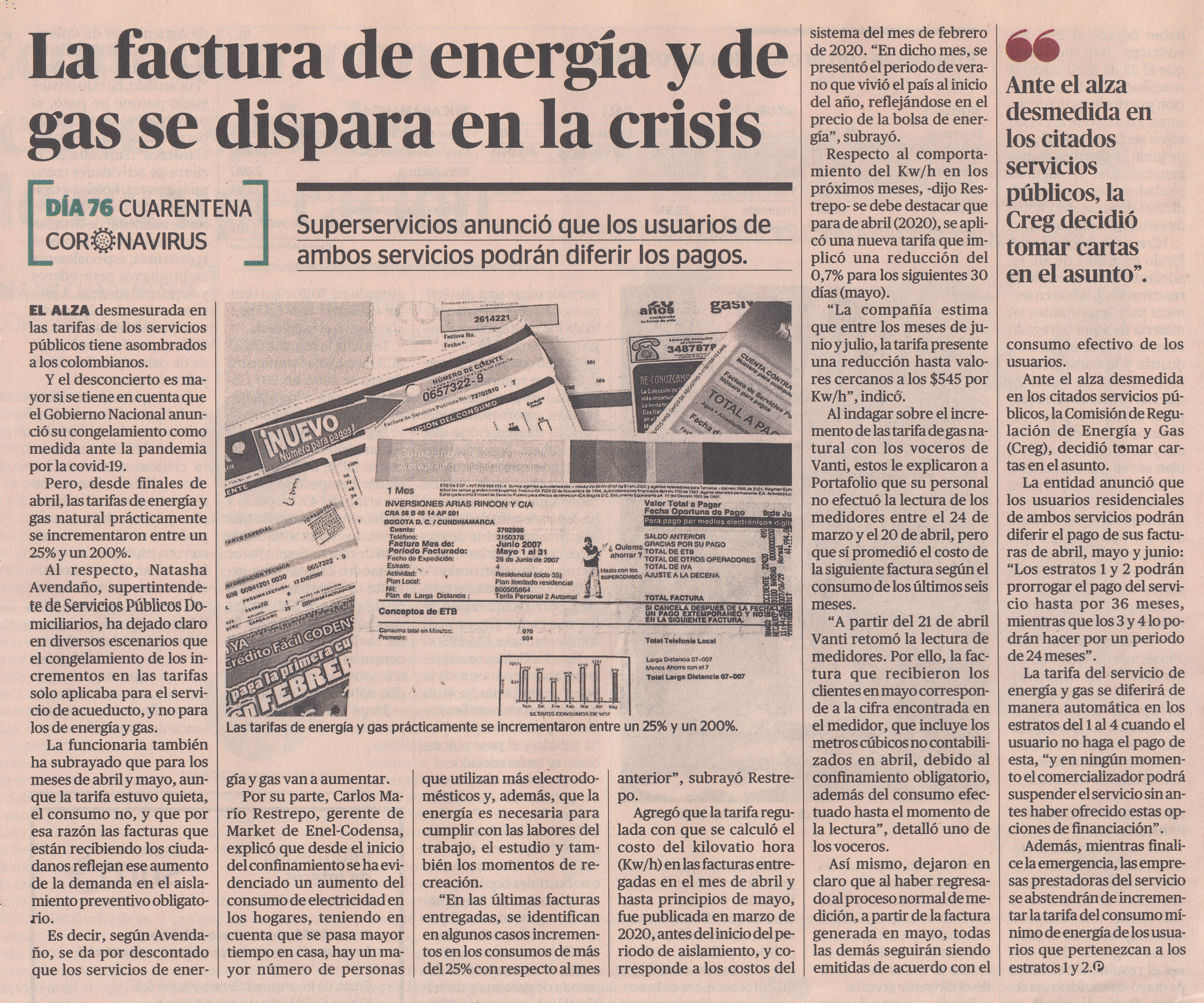 Factura de energía y de gas se dispara en la crisis, pag 8, Portafolio