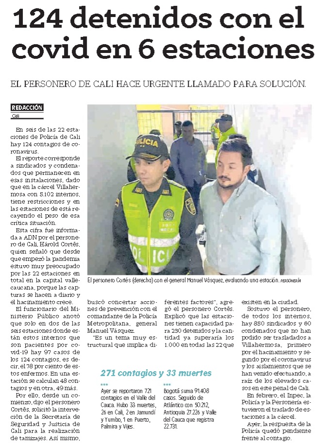 Preocupan los casos de coronavirus en las estaciones de Policía de la ciudad, la Personería solicita el apoyo de la Secretaría de Seguridad