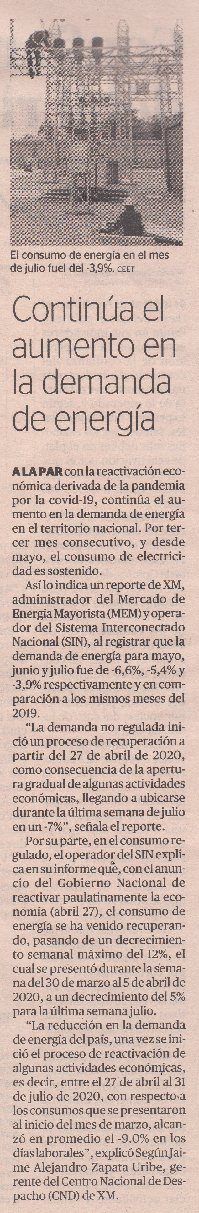 A la par con la reactivación económica derivada de la pandemia por el covid-19, continúa el aumento en la demanda de energía en el territorio nacional.