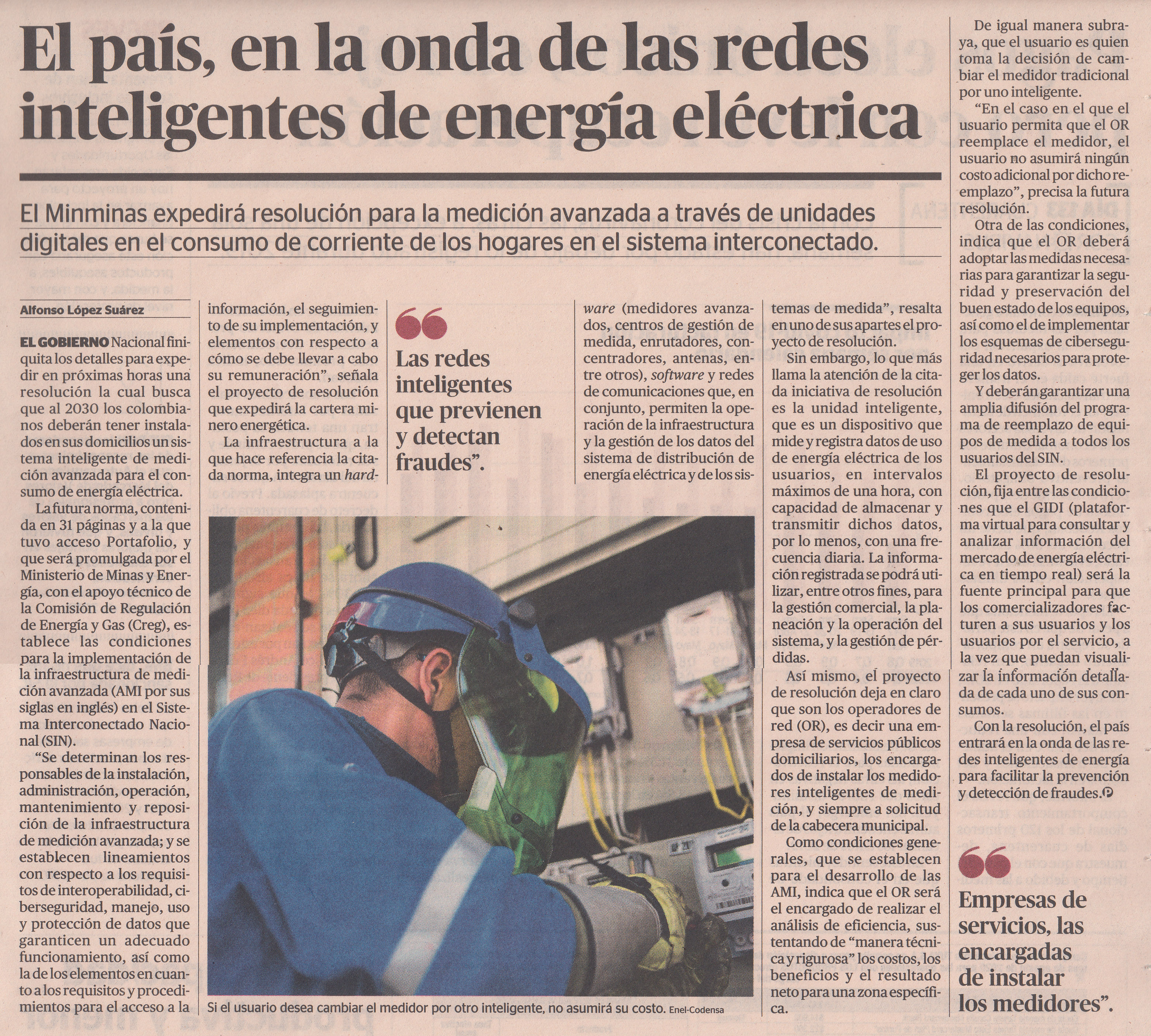 El país, en la onda de las redes inteligentes de energía eléctrica, pag 9, Portafolio