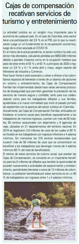Cajas de compensación reactivan servicios de turismo y entretenimiento, pag 9, Diario Occidente
