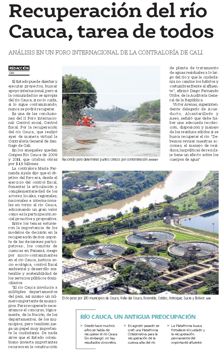 Analisis en un foro internacional de la Contraloría de Cali, sobre la tarea de recuperación del río Cauca