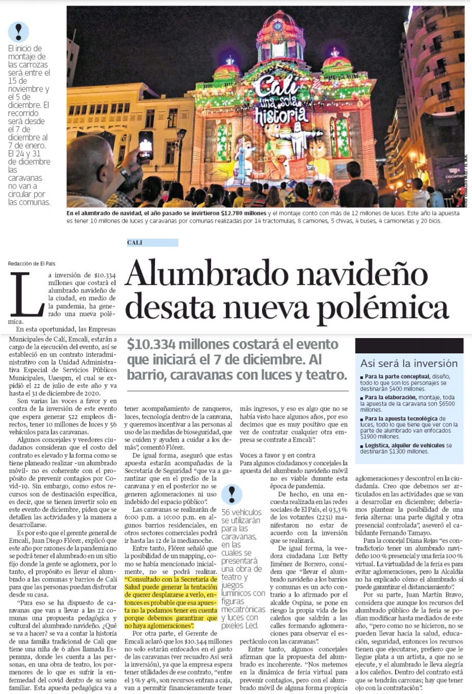 La inversión de $10.334 millones que costará el alumbrado navideño de la ciudad, en medio de la pandemia, ha generado una nueva polémica.