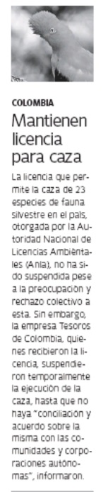 La licencia que permite la caza de 23 especies en el país no ha sido suspendida pese a la preocupación y rechazo colectivo de la misma