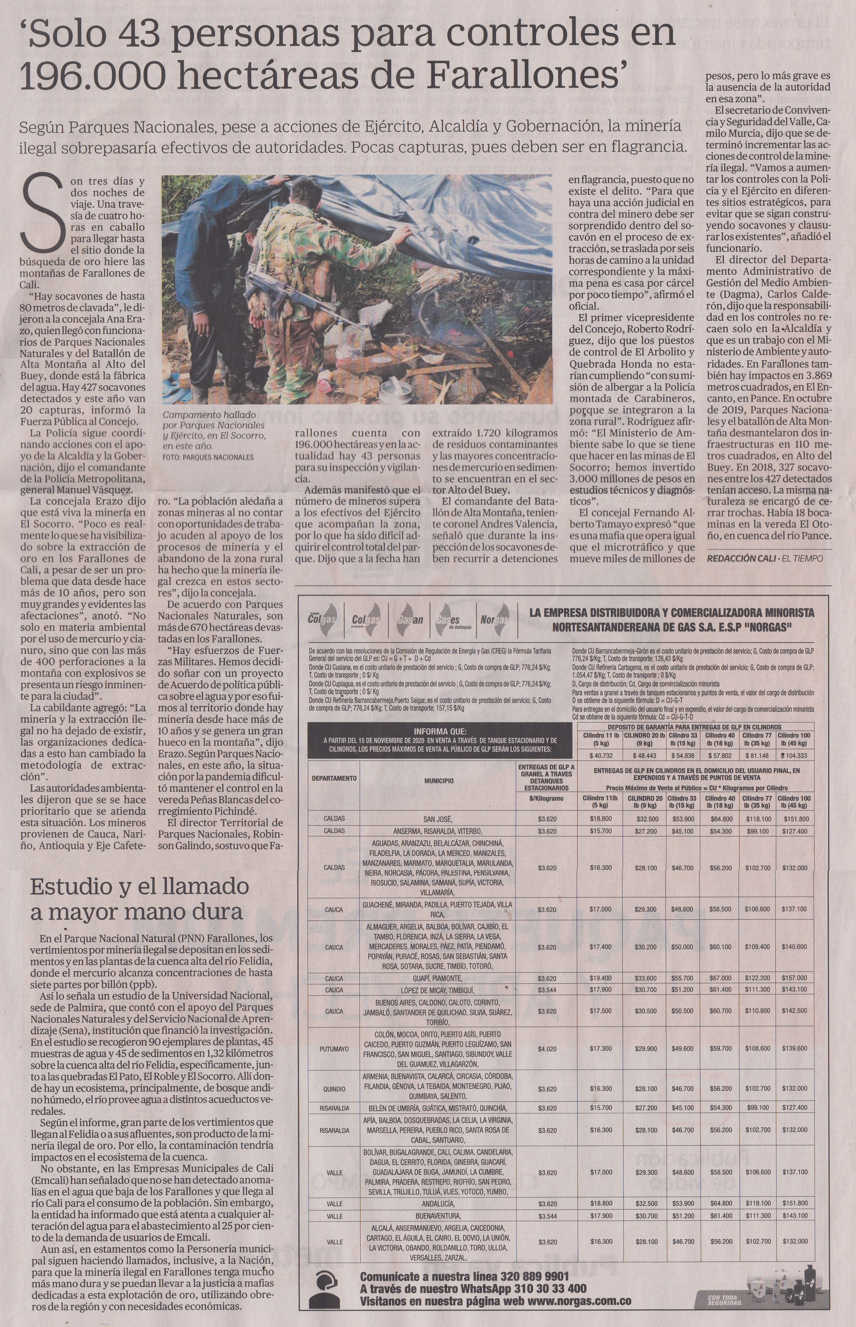 Solo 43 personas para controles en 196000 hectáreas de Farallones, pag 4-1, ElTiempo