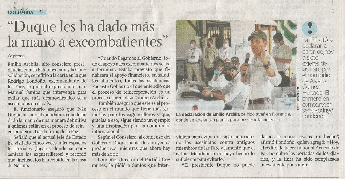 Alto consejero habla de apoyo a proceso de paz, pA4, El País, Feb 10-2021 +-.jpg