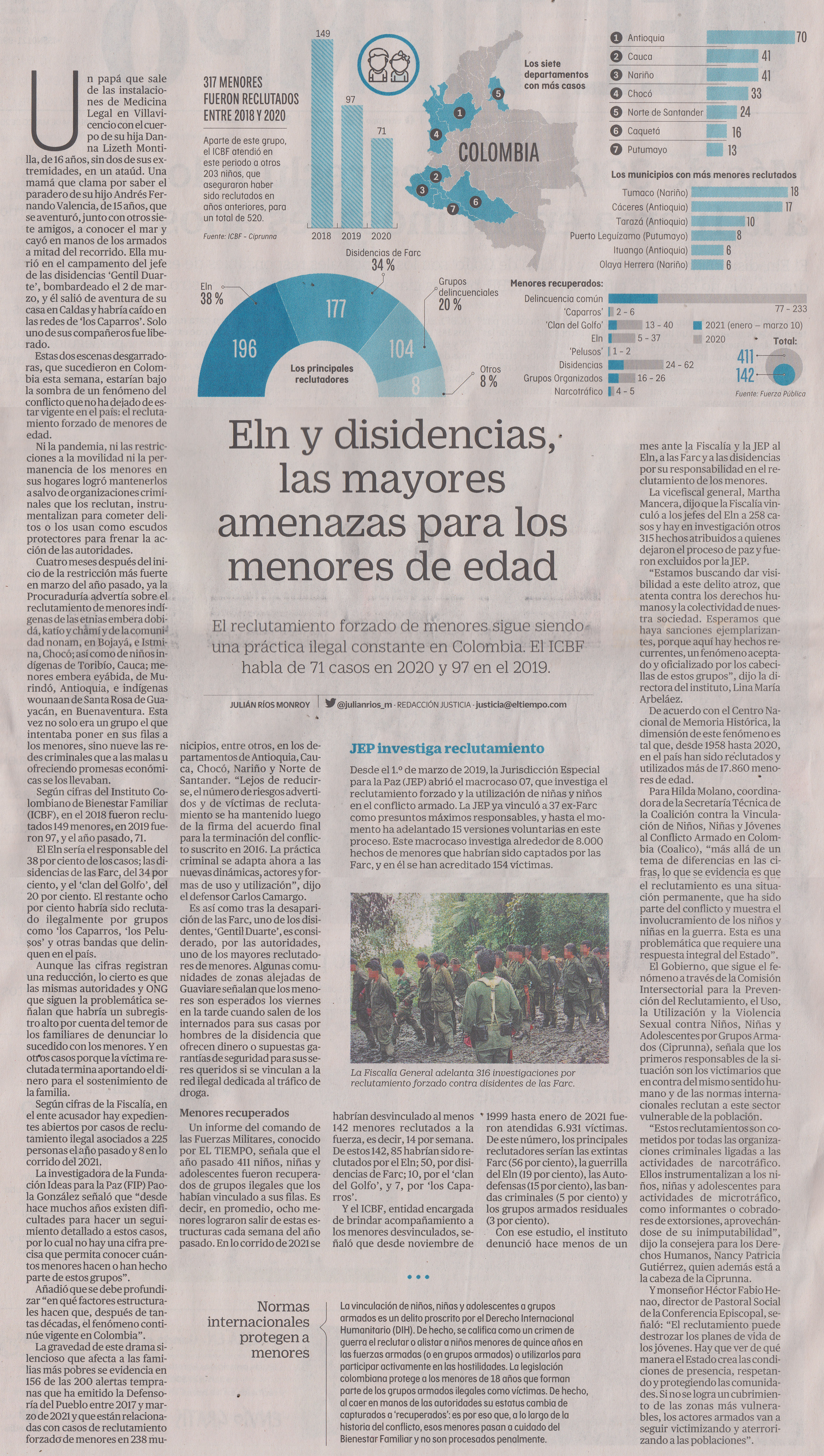 ELN y disidencias, las mayores amenazas para lo menores de edad, pag1-2, ElTiempo