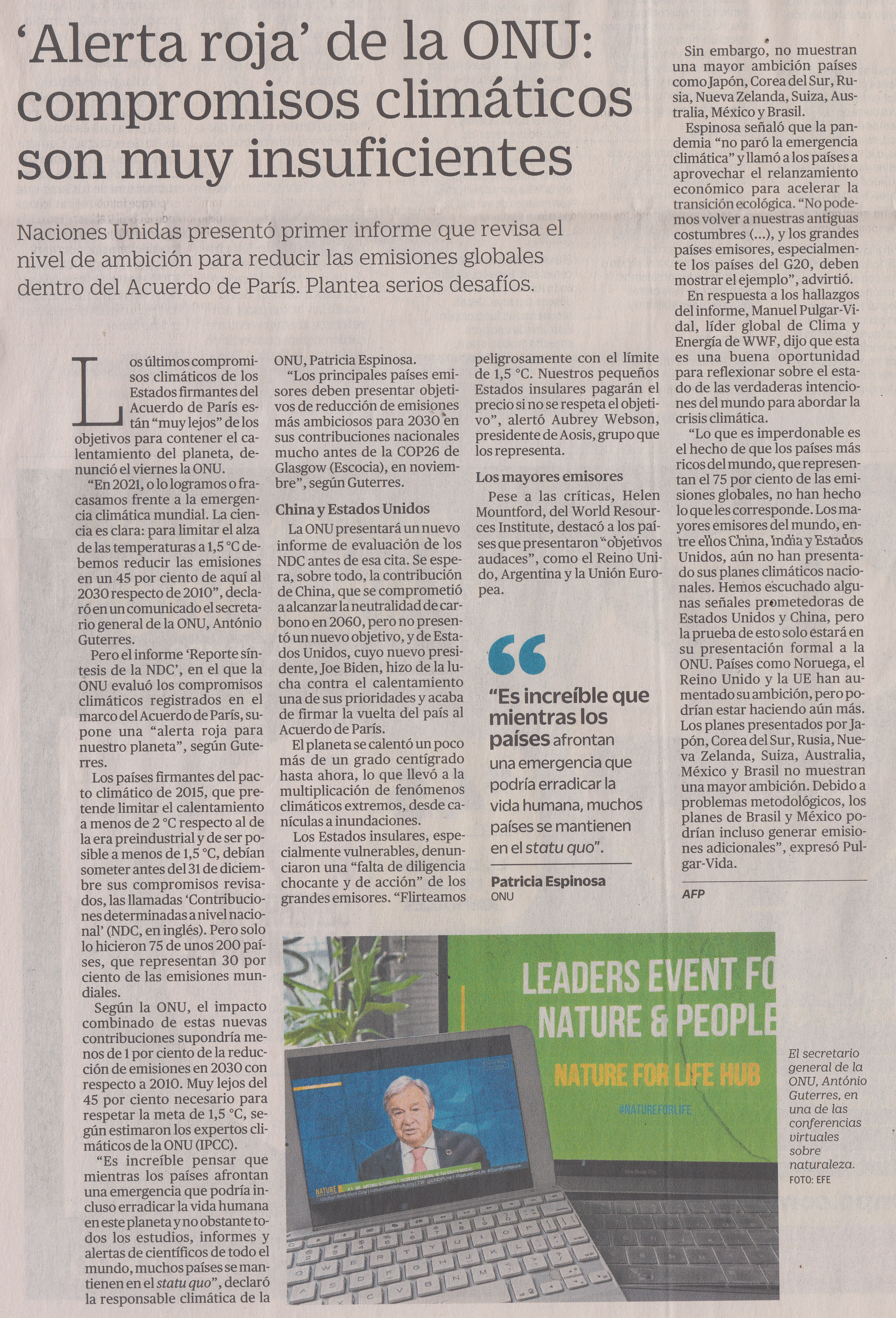 Alerta roja de la ONU- compromisos climáticos son muy insuficientes, pag2-4, ElTiempo