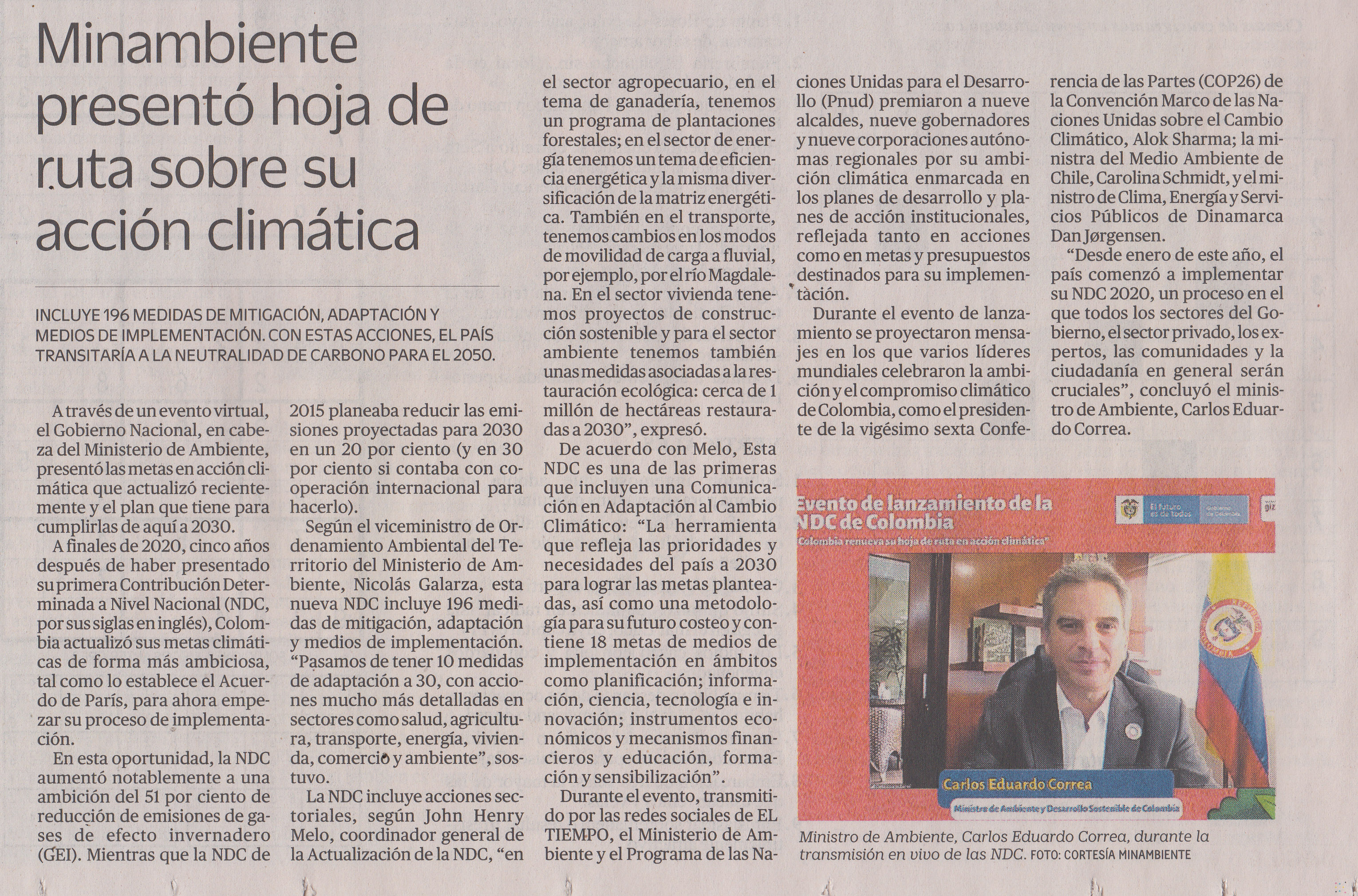Minambiente presentó hoja de ruta sobre su acción climática, pag 2-12, ElTiempo