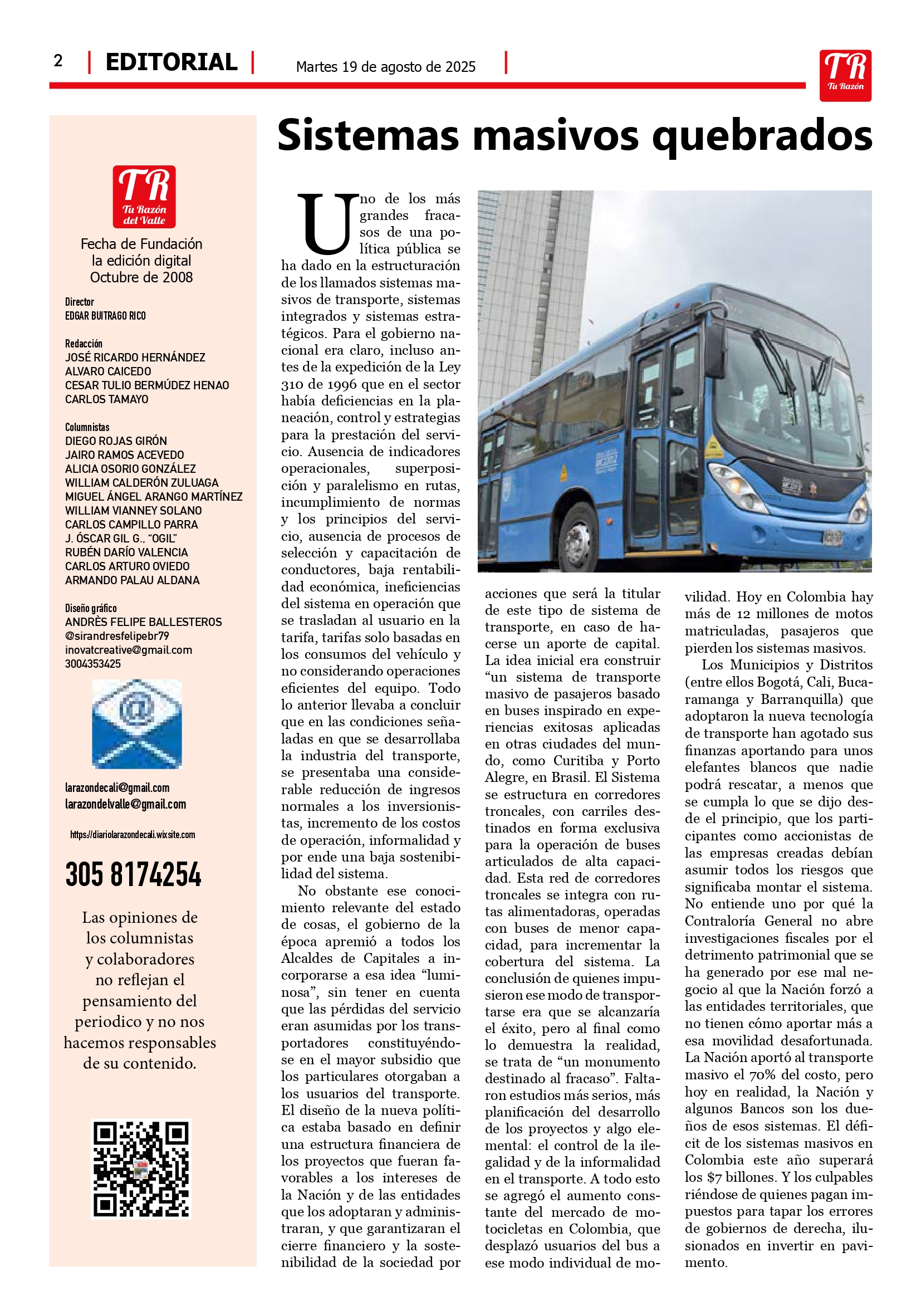Uno de los más grandes fracasos de una política pública se ha dado en la estructuración de los llamados sistemas masivos de transporte, sistemas integrados y sistemas estratégicos. Para el gobierno nacional era claro, incluso antes de la expedición de la Ley 310 de 1996 que en el sector había deficiencias en la planeación, control y estrategias para la prestación del servicio. Ausencia de indicadores operacionales, superposición y paralelismo en rutas, incumplimiento de normas y los principios del servicio, ausencia de procesos de selección y capacitación de