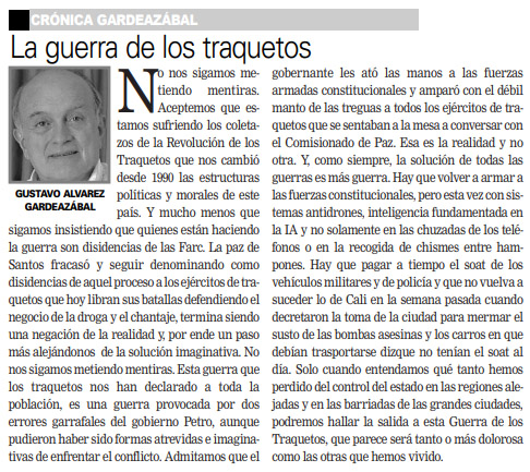 Y mucho menos que sigamos insistiendo que quienes están haciendo la guerra son disidencias de las Farc.