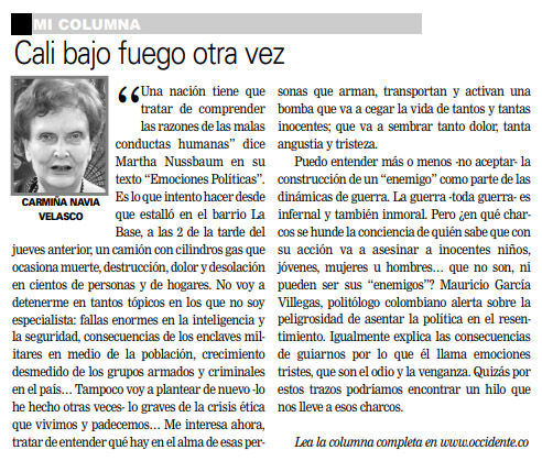 Opinión - Cali bajo fuego otra vez, pág4, Diario Occidente