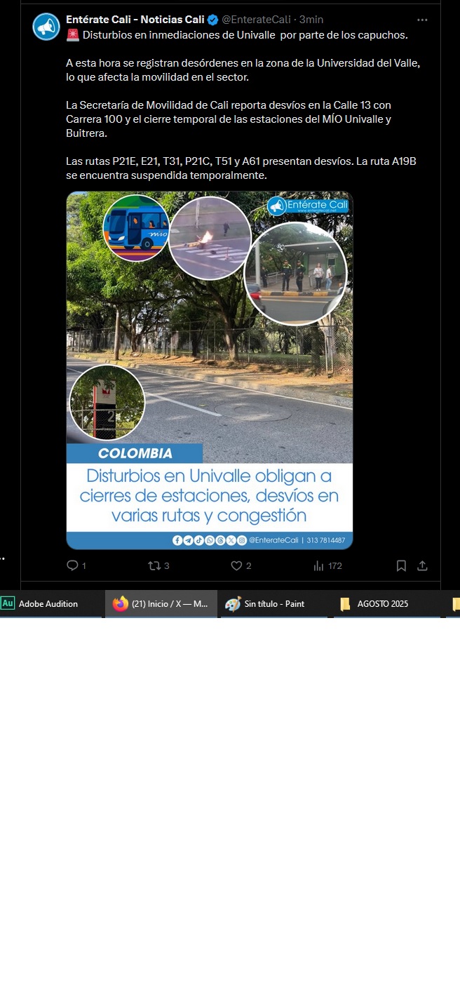 Disturbios en Univalle obligan al cirre de 2 estaciones del MIO y al desvio de rutas, Entérate Cali.X