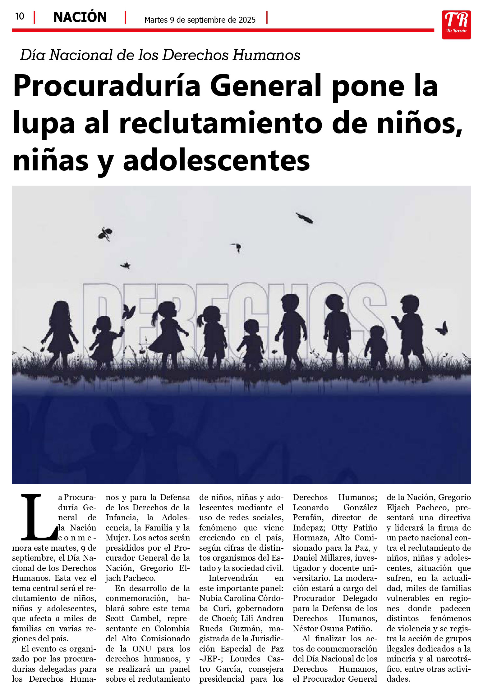 La Procuraduría General de la Nación c o nmemora este martes, 9 de septiembre, el Día Nacional de los Derechos