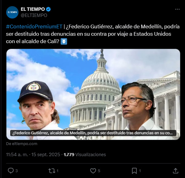 ¿Alcalde de Medellín, podría ser destituido tras denuncias en su contra por viaje a Estados Unidos con el alcalde de Cali_, El Tiempo X