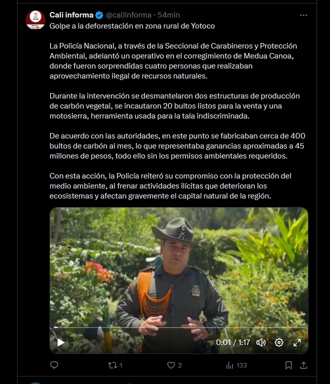 Operativo Policía Carabineros contra producción ilegal de carbón vegetal en cgto. Mediacanoa, Cali Informa.X