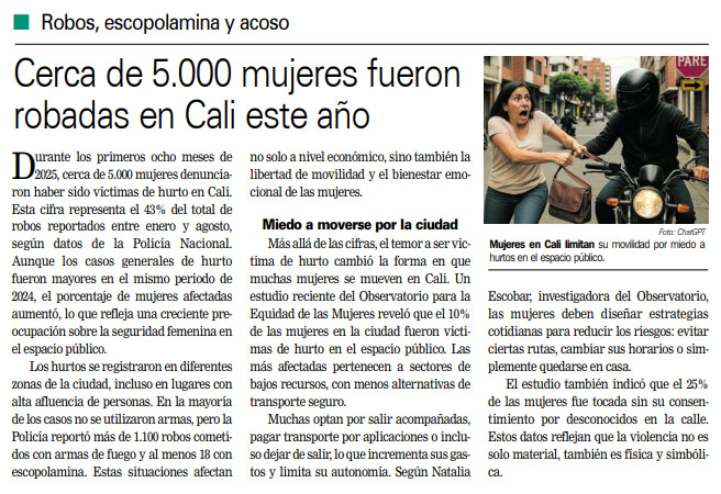 Cerca de 5000 mujeres fueron robadas en Cali este año, pág2, Diario Occidente