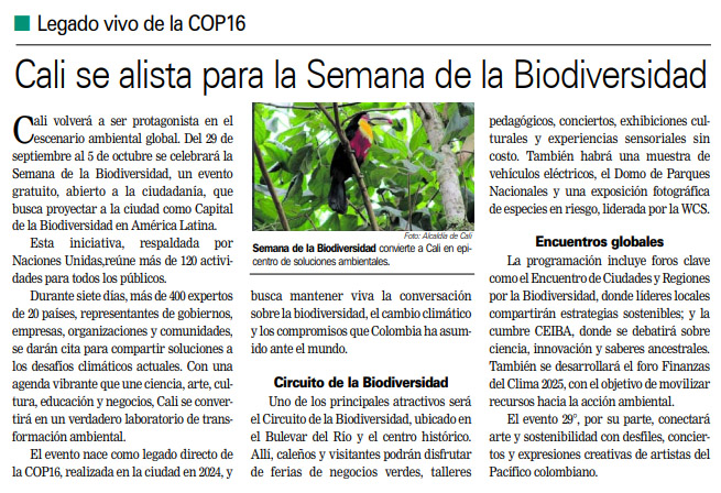 Cali se alista para la Semana de la Biodiversidad, pág2, Diario Occidente