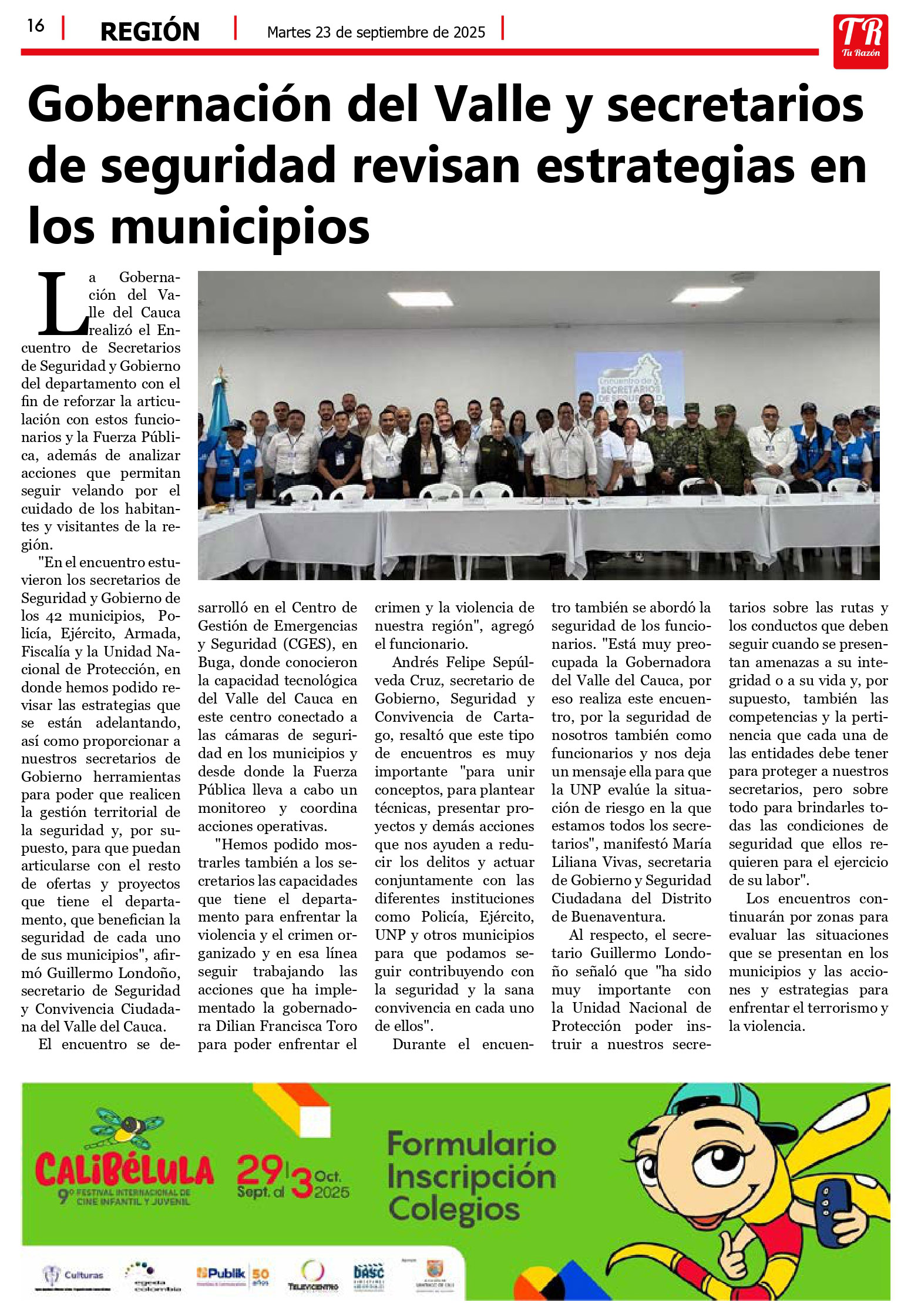 La Gobernación del Valle del Cauca realizó el Encuentro de Secretarios de Seguridad y Gobierno del departamento con el fin de reforzar la articulación con estos funcionarios y la Fuerza Pública, además de analizar acciones que permitan seguir velando por el cuidado de los habitantes y visitantes de la región.