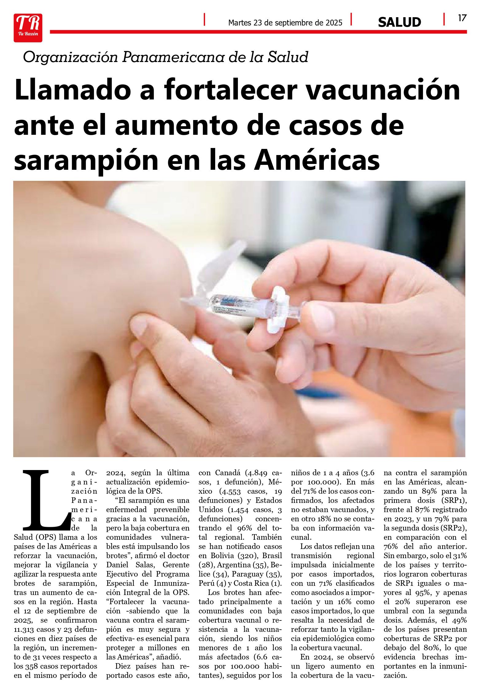 Llamado a fortalecer vacuanción ante aumento de casos de sarampión, Tu Razón