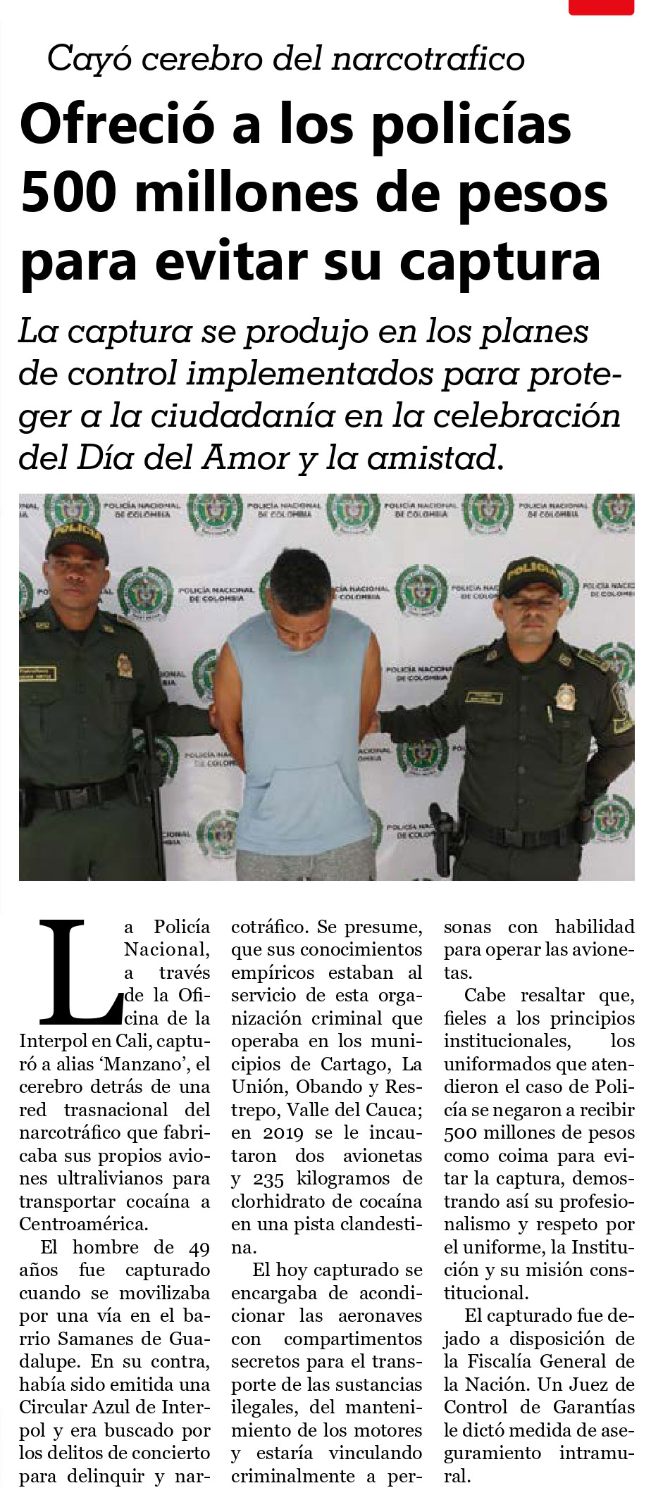 La Policía Nacional, a través de la Oficina de la Interpol en Cali, capturó a alias ‘Manzano’, el cerebro detrás de una