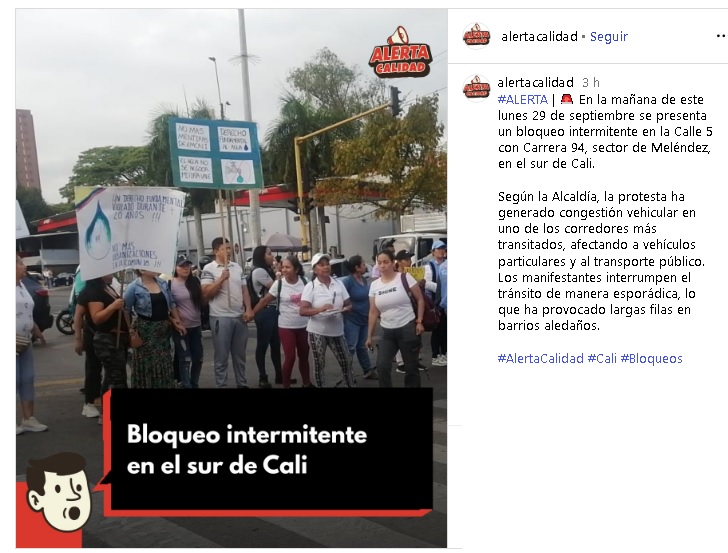 Bloqueo intermitente en el sur de Cali, Radio Calidad IG