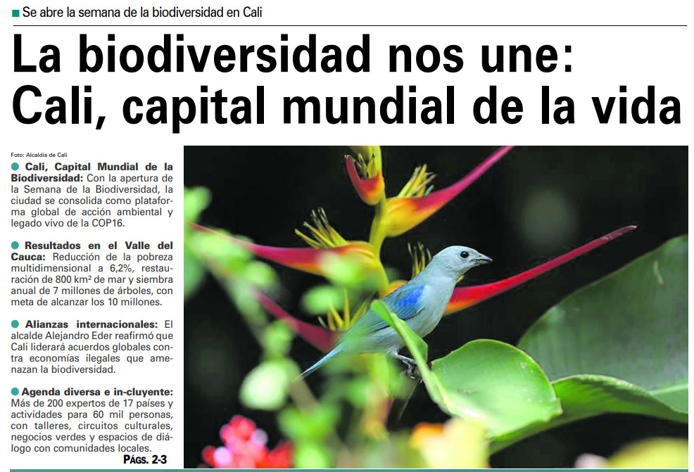 La biodiversidad nos une, Cali capital mundial de la vida, pág1, Diario Occidente