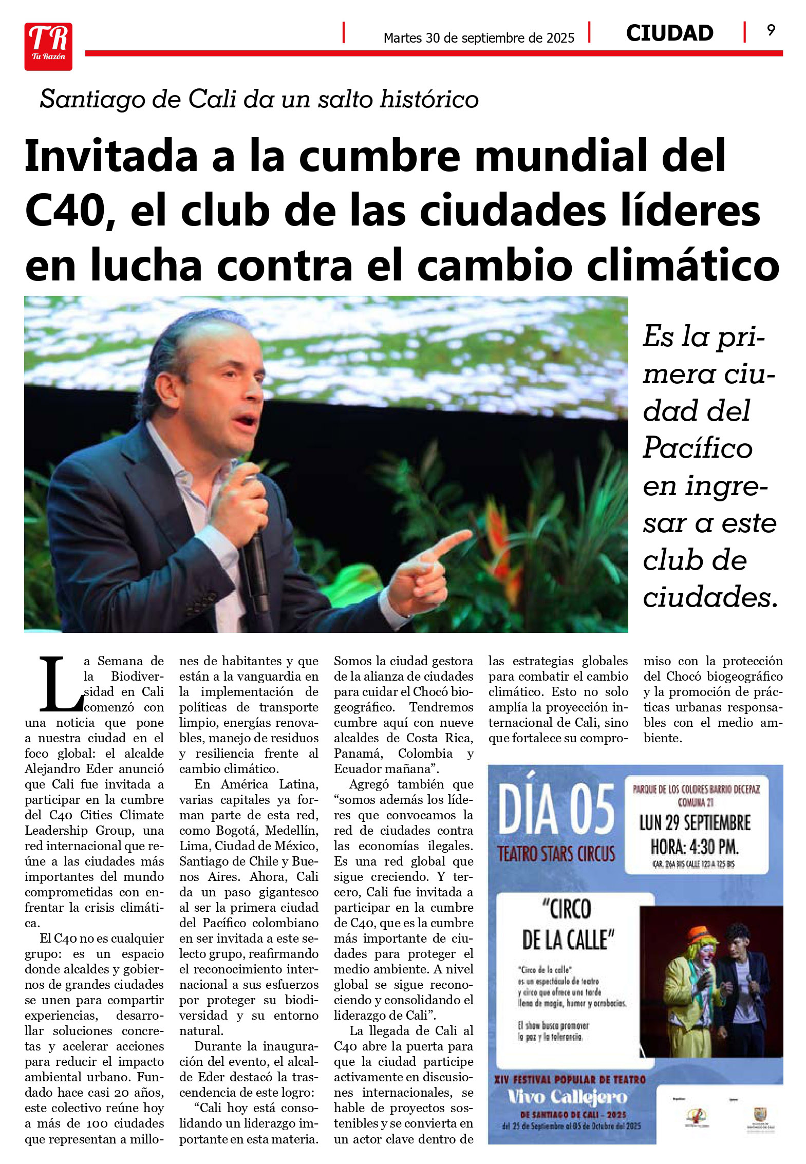 Cali invitada a la cumbre mundial del C40, ciudades líderes contra el cambio climático, Tu Razón