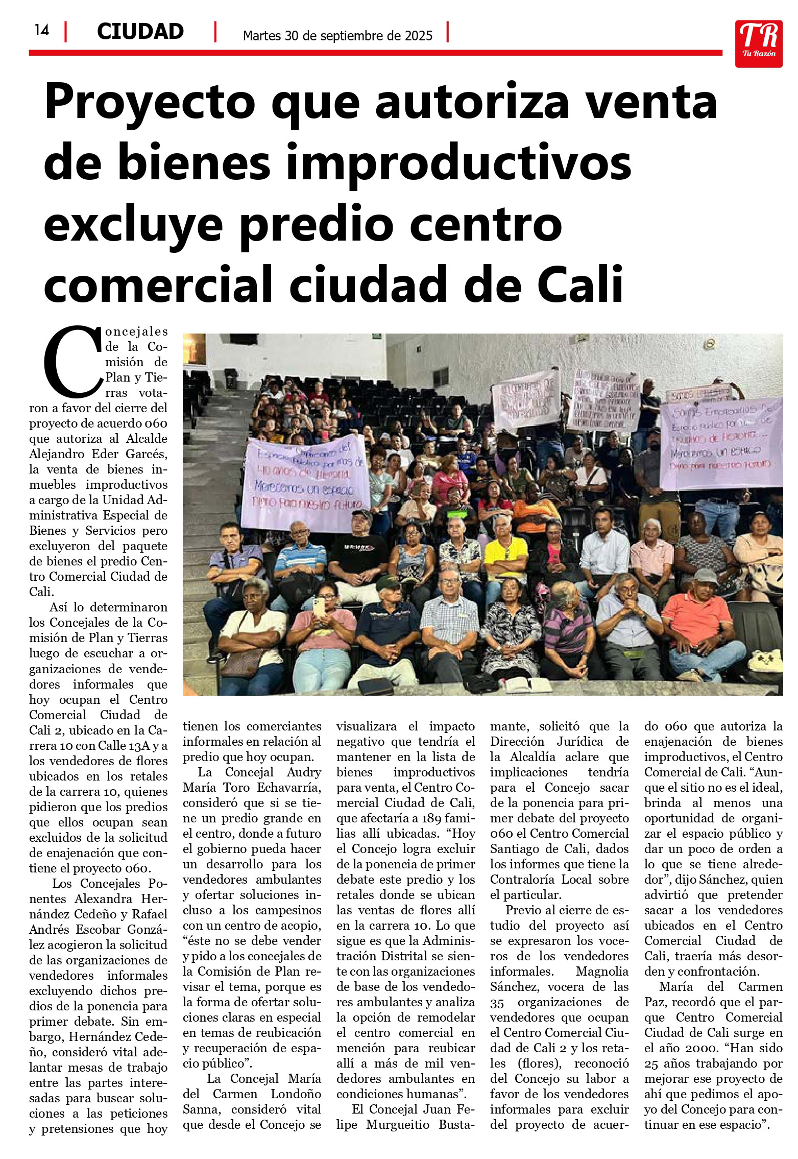 Concejales de la Comisión de Plan y Tierras votaron a favor del cierre del proyecto de acuerdo 060 que autoriza al Alcalde Alejandro Eder Garcés, la venta de bienes inmuebles improductivos a cargo de la Unidad Administrativa Especial de Bienes y Servicios pero excluyeron del paquete de bienes el predio Centro Comercial Ciudad de