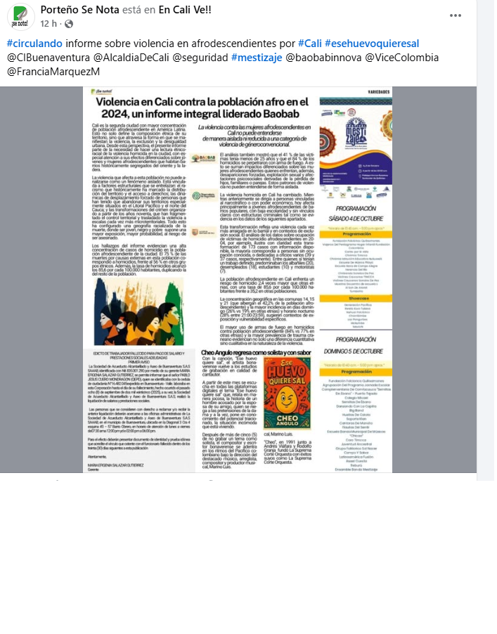 Violencia en Cali contra la población afro en el 2024, Porteño, Facebook