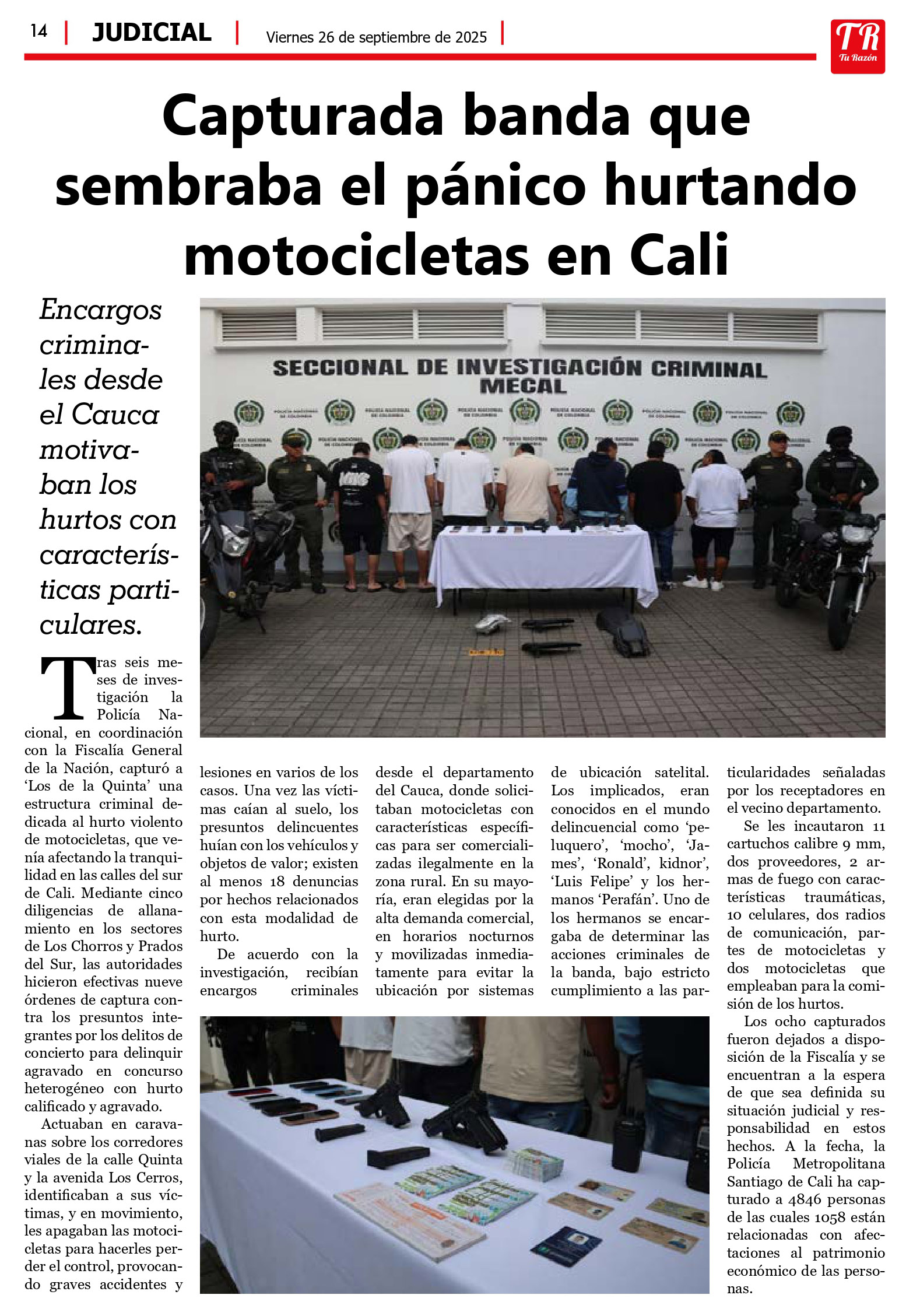 Capturada banda que sembrada el pánico hurtando motocicletas en Cali, Tu Razón